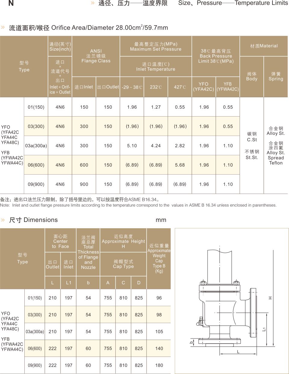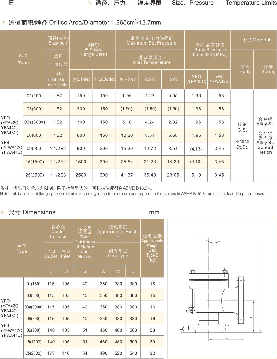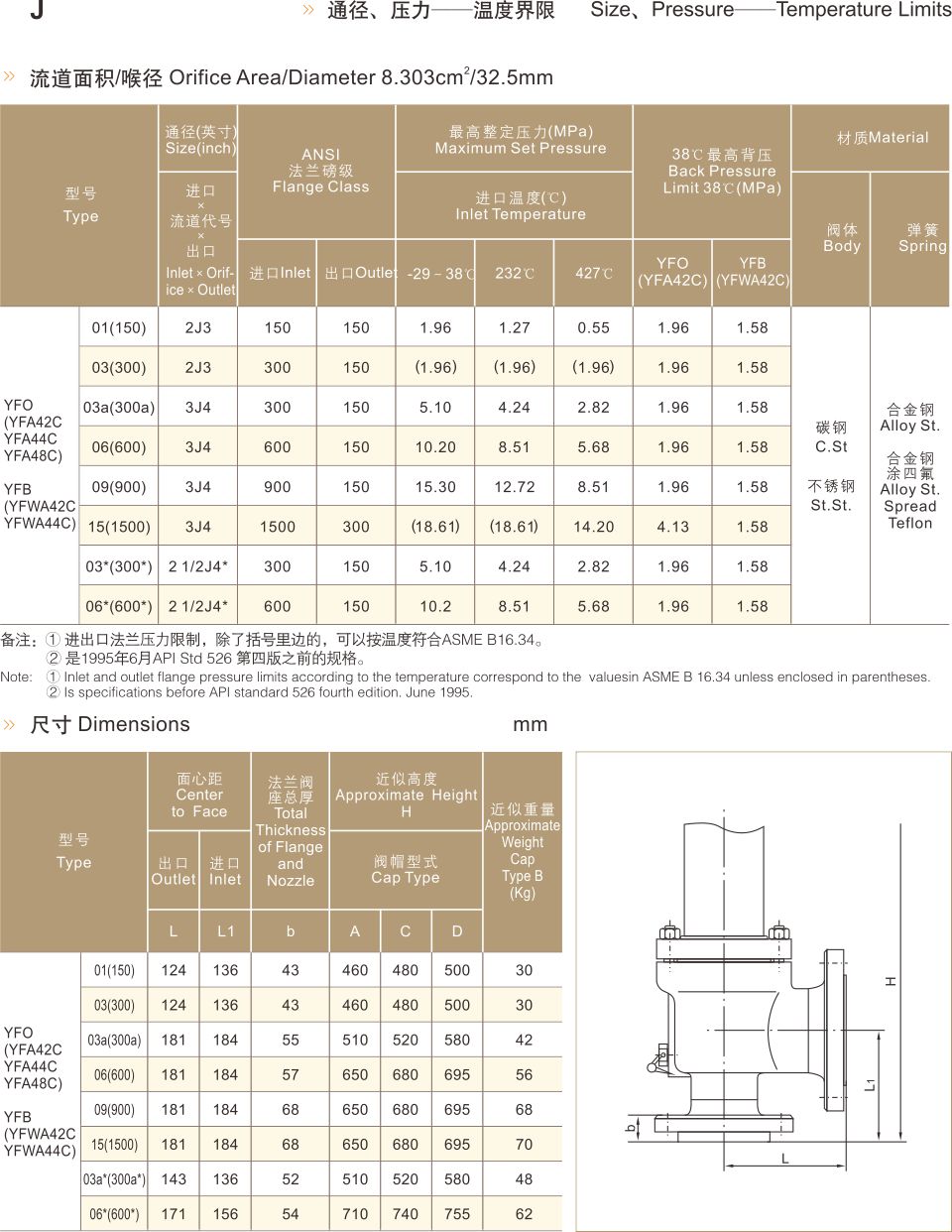 YF 系列安全閥材料表及標準參數(shù)
